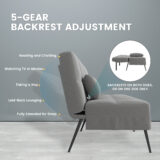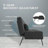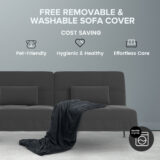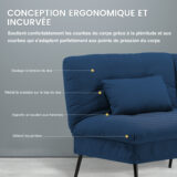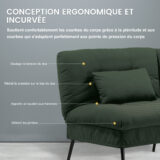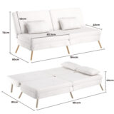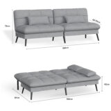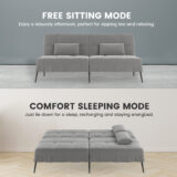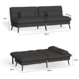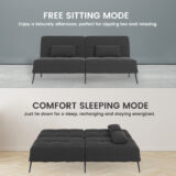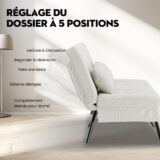 Le canapé-lit 3 places convertible dispose d’un dossier divisé à 5 niveaux réglables, permettant de passer facilement d’une position assise à une position inclinée ou couchée. Son assise généreuse de 55 cm de profondeur offre un bon confort tout au long de la journée. Une fois déplié, il devient un couchage d’appoint pratique pour les invités.