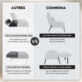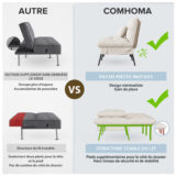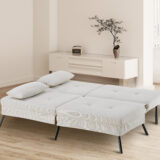 Ce canapé-lit avec dossier réglable est conçu pour un usage domestique régulier. Le mécanisme manuel permet des ajustements simples et rapides. Le cadre métallique assure une bonne stabilité, tandis que le tissu et le rembourrage offrent une assise agréable.