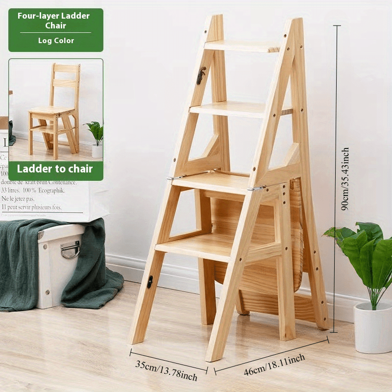 Chaise escabeau en bois 2 en 1 : assise quotidienne et échelle gain de place