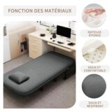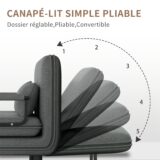 Une fois déplié, il se transforme en lit pratique pour accueillir un invité ou pour se reposer. Sa conception compacte permet d’optimiser l’espace tout en conservant un mobilier fonctionnel et élégant.
