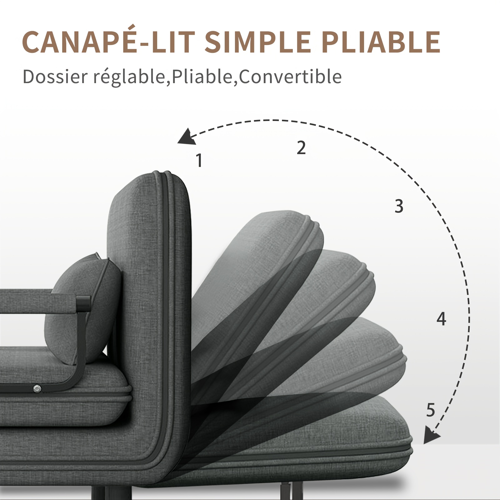 - Fauteuil convertible 3 positions : fauteuil, méridienne ou lit