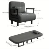 Ce fauteuil convertible en canapé-lit est conçu pour offrir confort et polyvalence dans les espaces réduits. Compact et élégant, il permet de profiter d’un fauteuil confortable pendant la journée et de le transformer facilement en lit d’appoint lorsque nécessaire.