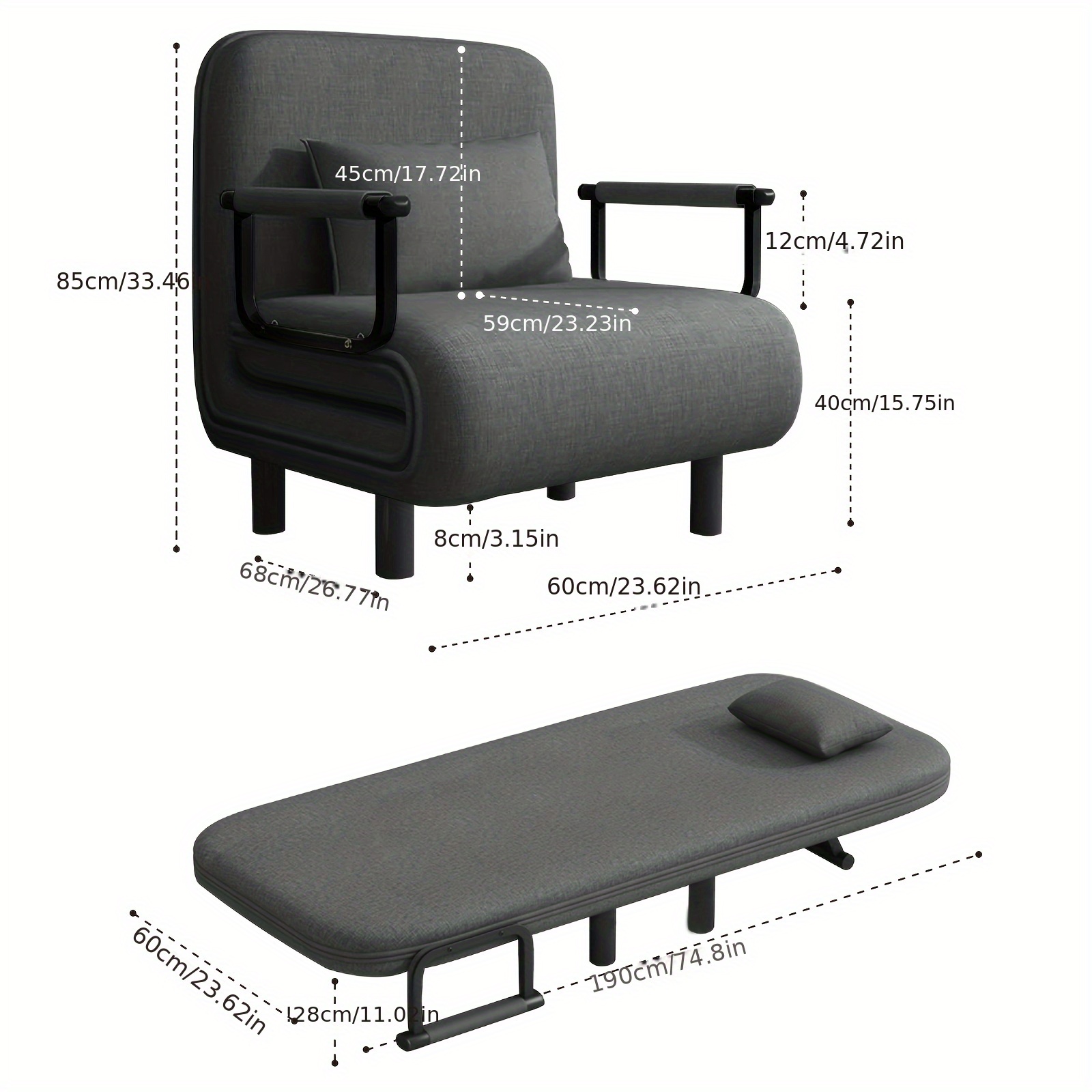 Ce canapé-lit compact peut être utilisé comme fauteuil de salon, siège d’appoint ou lit supplémentaire selon vos besoins. Son design sobre permet de l’intégrer facilement dans un salon, une chambre ou un bureau.