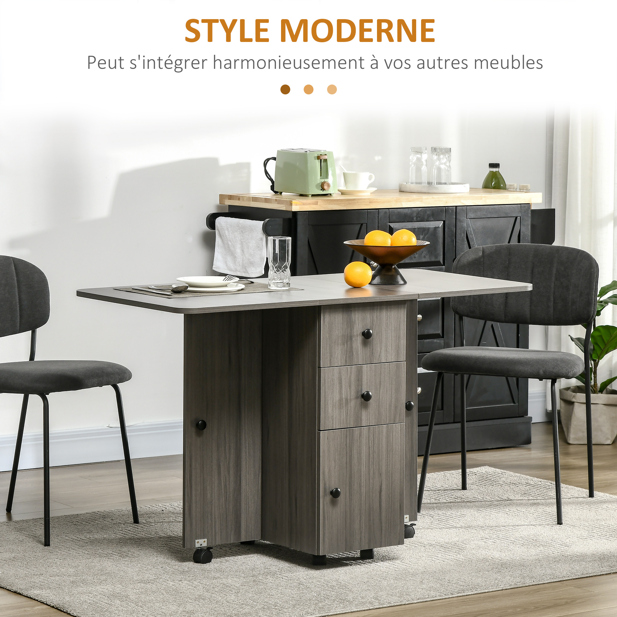 Avec cette table de cuisine pliante multifonction, vous combinez repas, rangement et gain de place dans un seul meuble. Elle simplifie l’organisation de la cuisine tout en conservant un espace agréable et fonctionnel.