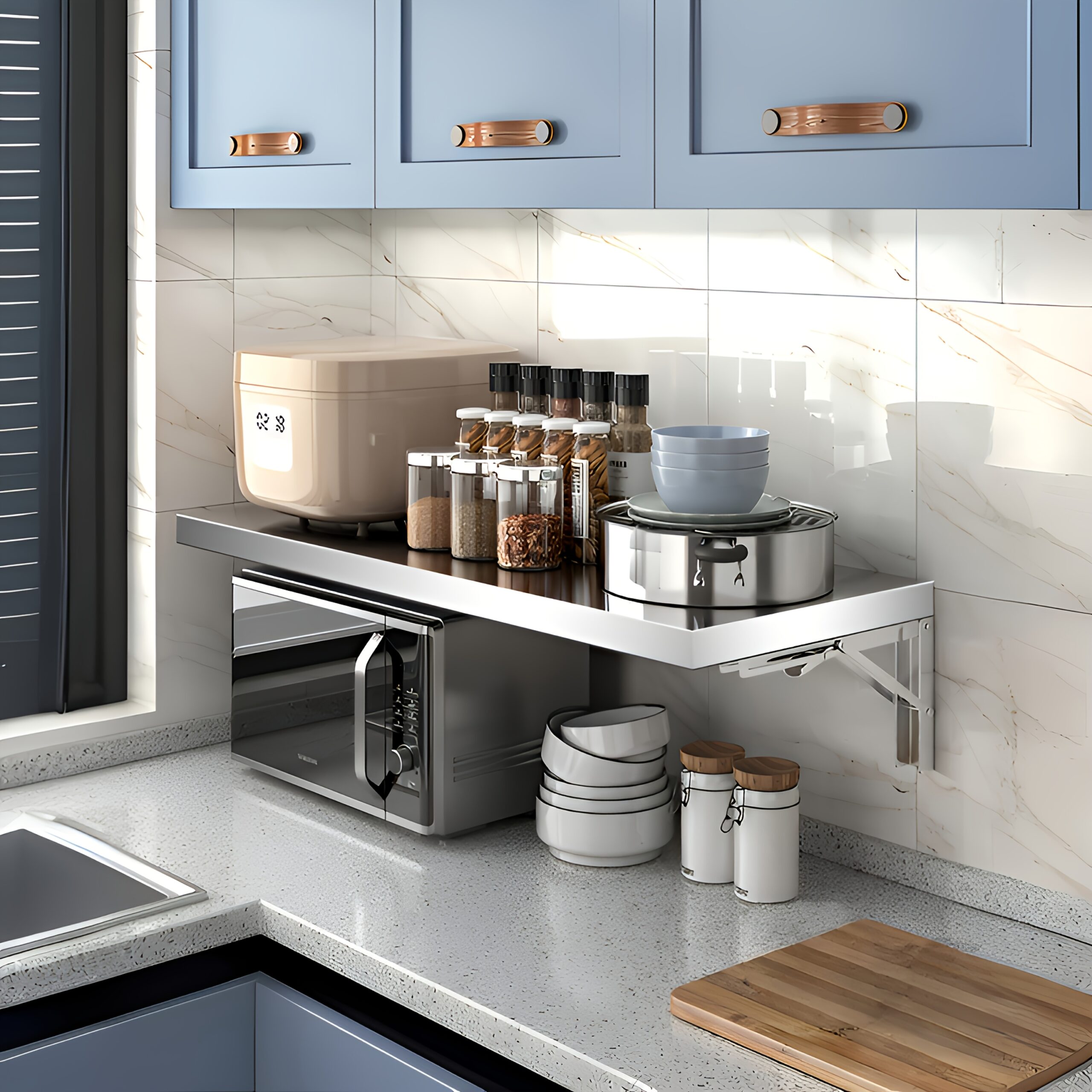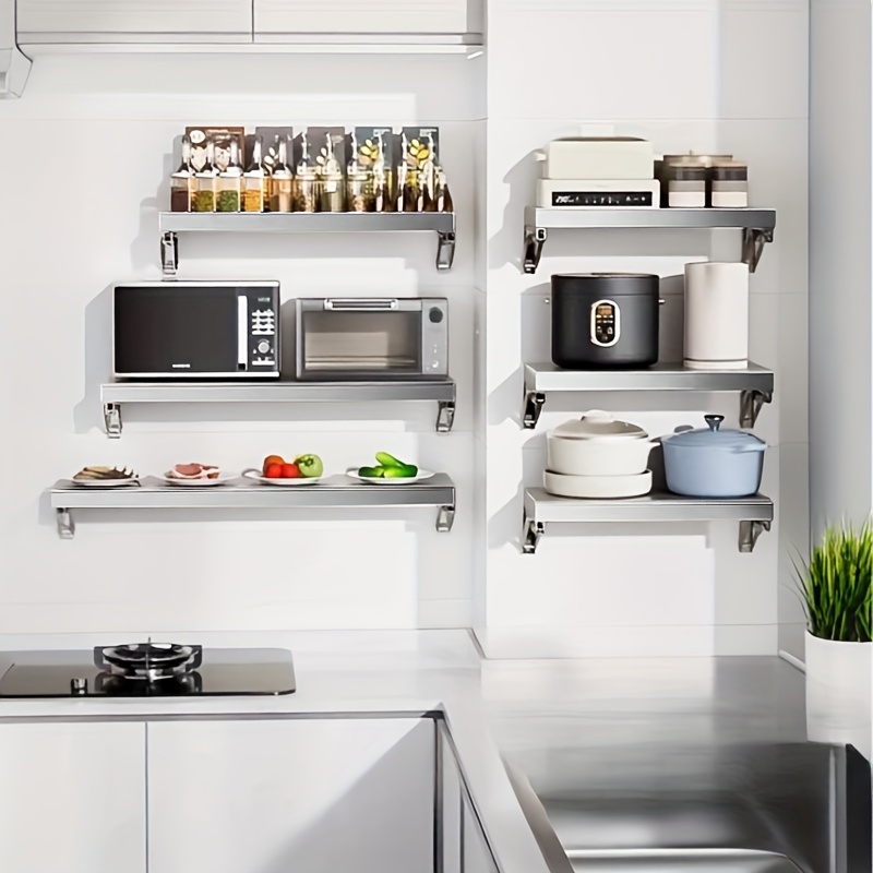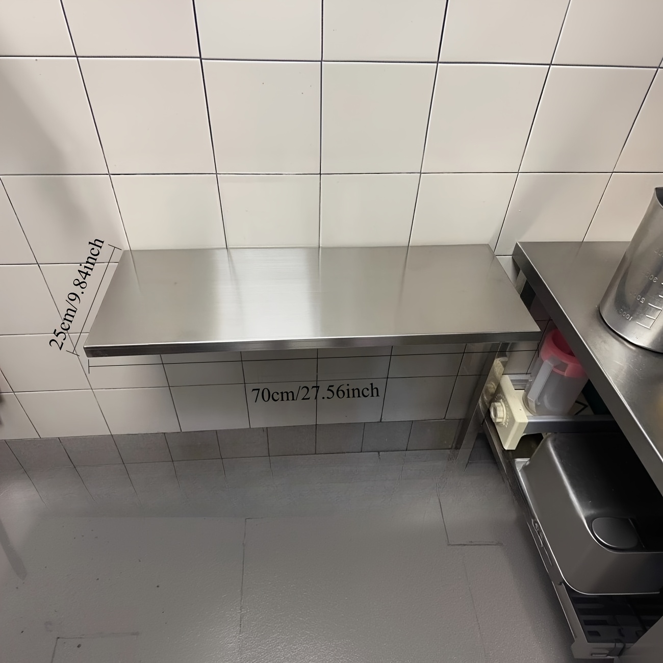 Le plateau en acier inoxydable 304 offre une surface lisse et durable qui résiste à l’usage. La structure renforcée améliore la stabilité, y compris lorsque vous posez des objets du quotidien. Le nettoyage reste rapide, car l’inox se nettoie facilement avec un chiffon humide. Vous pouvez aussi ajouter un lien interne vers une catégorie de rangements muraux ou d’accessoires cuisine.